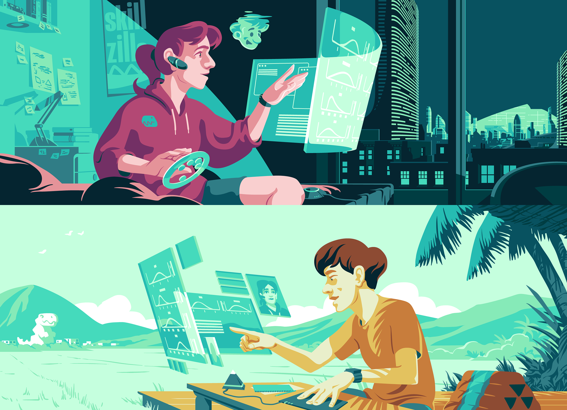 Skillzilla is an online education platform where students collaborate and learn computer engineering skills. I created a variety of illustrations for the site including hero illustrations, landing page illustration, avatar pictures as well as icons.